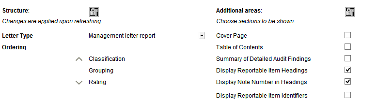 | Display Reportable Item Headings | Select to display reportable item headings that are selected to display in the Management Letter. |