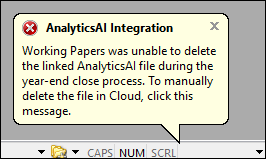 An error message now displays if the year end close process fails to delete an associated AnalyticsAI file. If you receive this error, you’ll need to manually delete the AnalyticsAI file in Cloud.
