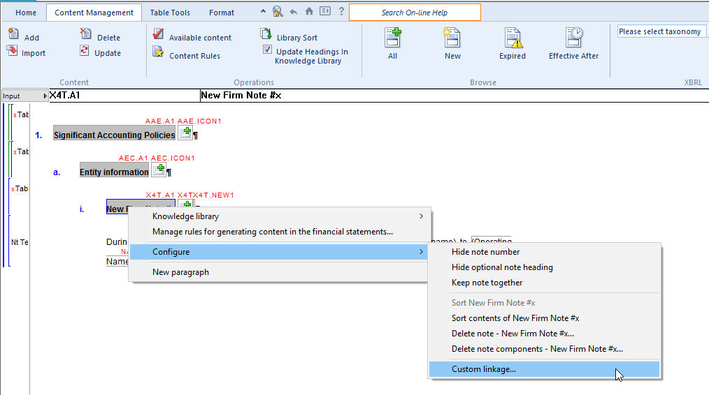 To create a custom linkage, you must have created the financial statement area content to serve as the source and target for the linkage.