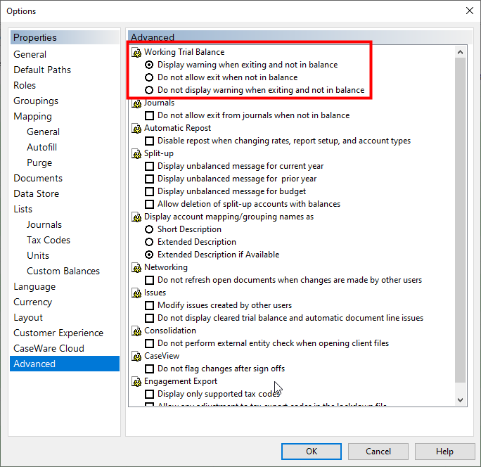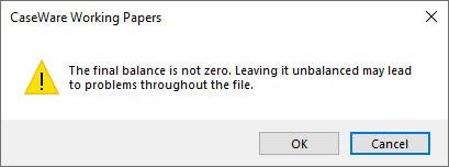 When you have a particular entity selected, your trial balance may be out by the net results of that division (provided the division is not a full chart of accounts). This will prompt you that the trial balance is not balancing when you attempt to exit the trial balance.