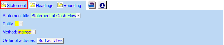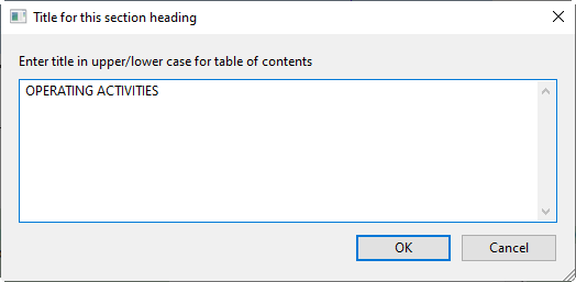The headings for the Statement of Cash Flow can be formatted. Refer to Statement Section Headings Formatting for more information on the options available. |