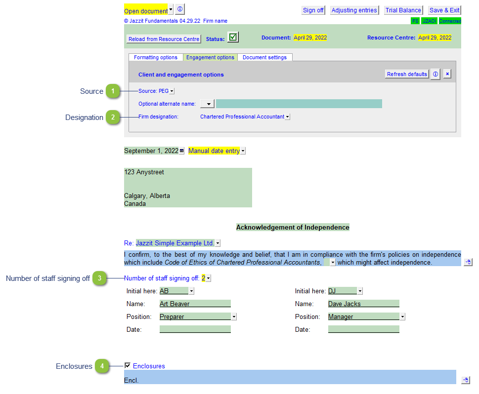 Set the number of staff that signs off on the letter. Increasing this will increase the number of sign off areas available in the letter. 5 is maximum.