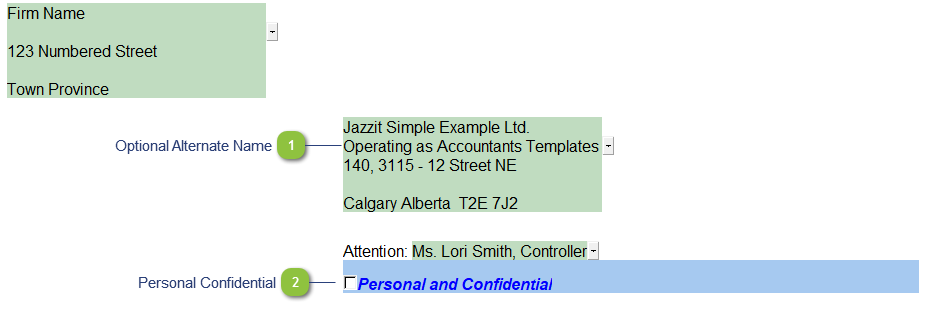 Data from the optional alternate name appears here. Clicking on the dropdown enables the option to show a blank line. |