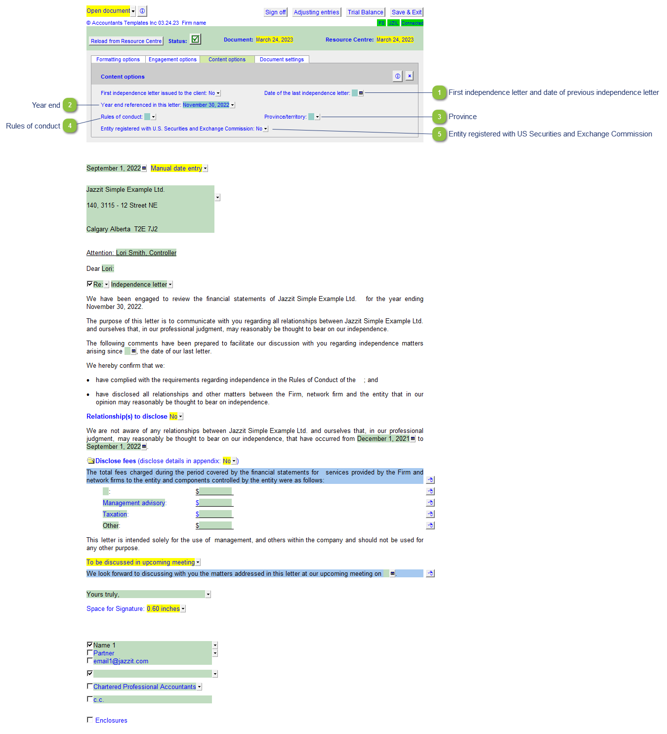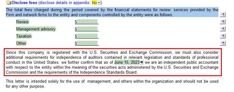 Indicate whether or not this is the first independence letter done for the client. If set to 'No' you will also need to indicate the date of the previous letter. |