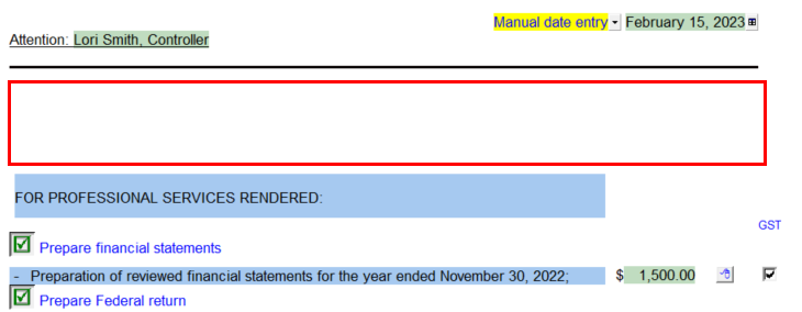 The tax is defaulted based off the province completed in the Engagement Properties dialog. Note: The information is directed routed through the Jazzit Financial Statements you may need to open & save/close the Financial statements for the information to transfer. You can switch to HST/GST if the default tax is not applicable for invoicing. |