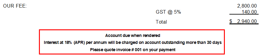 The invoice can display detailed amounts for each service, or just the details and a total fee. Click on the $ details set to print to skip or show the details. |