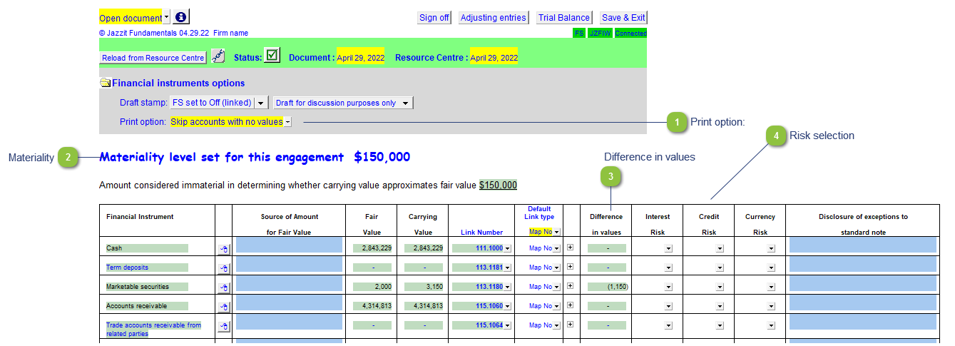 The materiality for the engagement is drawn from the materiality checklist or the Support Settings panel. See technical bulletin JZ124. |