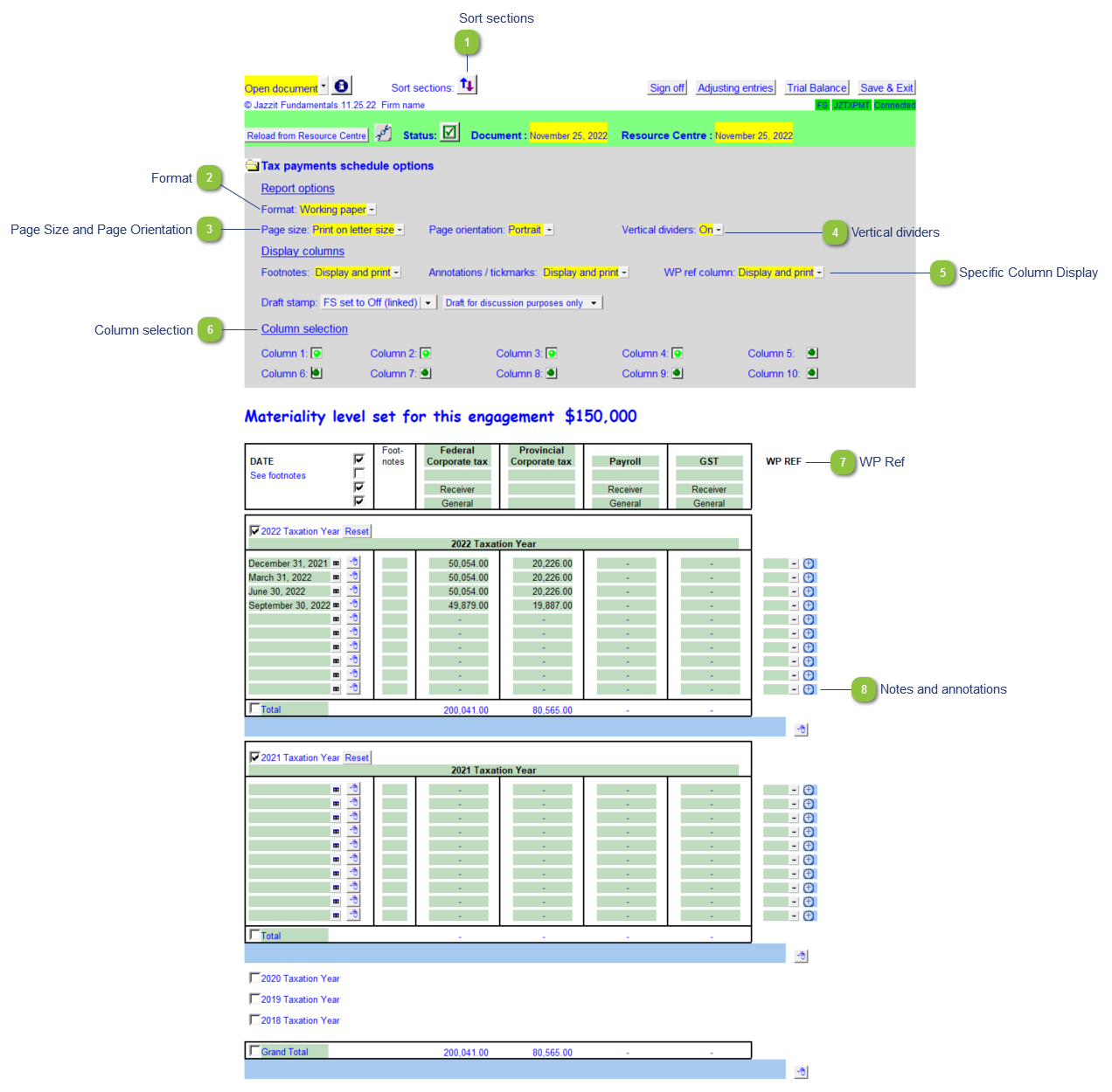 Setting the option to 'Working paper' will enable the WP Ref and Annotation columns to print. Setting the option to 'Client version' will skip the WP Ref and Annotation columns. |
