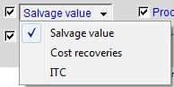 The columns selection options allow you to choose which columns you want to print on the working paper. The column indicating Salvage value can also be changed to show Salvage value, Cost recoveries or ITC.
