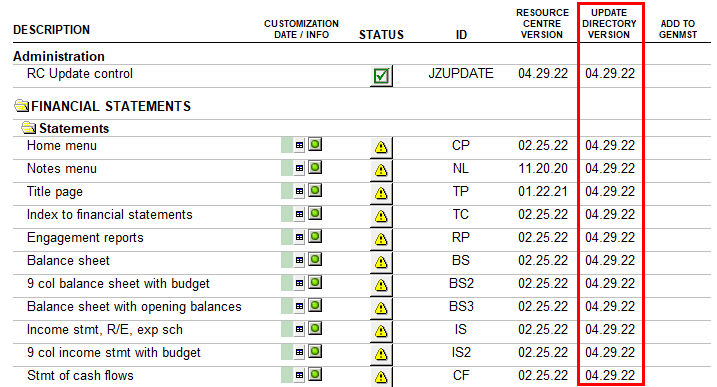 The klibupdate folder contains copies of the latest Jazzit modules as indicated by the Update Directory Version dates. Update Directory dates are compared with Resource Centre Version dates to determine what needs to be updated. If you do not see the Update Directory dates, click on the button entitled
