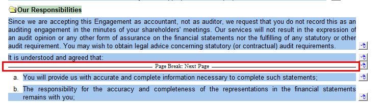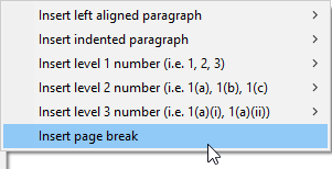 Page breaks can be inserted into a paragraph. Right-click on the express menu and select Insert page break.