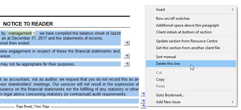 To remove the page break, right-click on the express menu next to the page break row and select Delete this line.