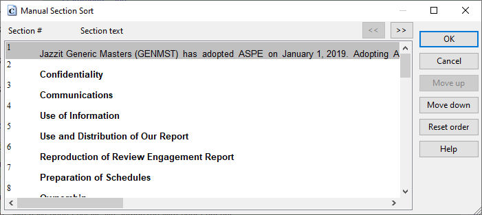 ) button. This allows you to sort the sections (headings) in the letter into the desired order.
